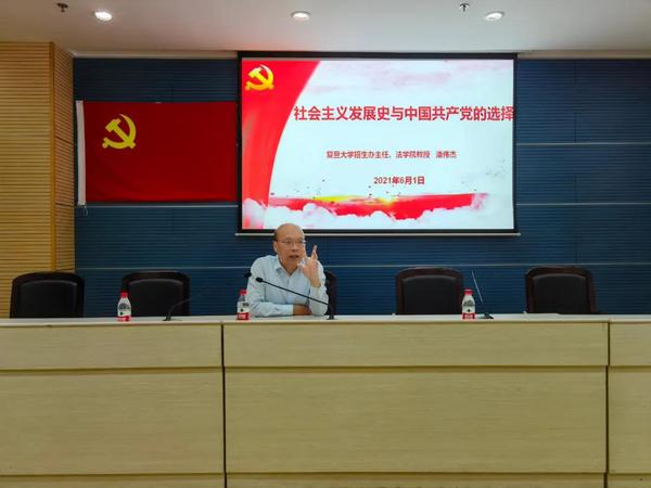 2021年6月1日下午,校党史学习教育宣讲团专家、法学院教授潘伟杰以《社会主义发展史与中国共产党的选择》为题,为体教部党支部全体党员及积极分子作专题宣讲报告,领导班子成员出席会议。体教部党支部书记郭建忠主持会议。