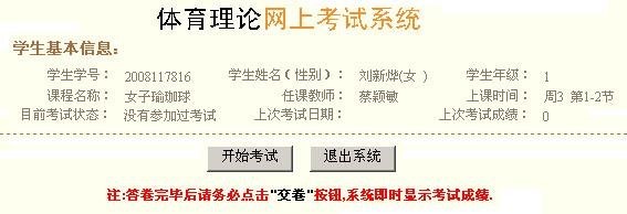3.进入考试界面后,系统显示“学生基本信息”(图 4),请认真核对学生基本信息,确认无误后点击“开始考试”,进入正式答题界面。考试有二次机会,记载最好成绩。