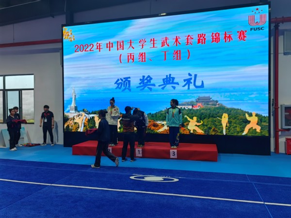 2022年中国大学生武术套路锦标赛于2023年4月2日—5日在湖北孝感举行。来自清华大学、丁香av 、浙江大学等67所高校的900余名选手齐聚赛场,展现精湛技艺。我校武术队由孔繁辉老师带队,共计8名运动员,他们顶住并组压力参加比赛,在7个单元的赛事中,获得个人5金4银1铜、运动队总分女子丙B组团体第三名的好成绩。运动队团体、教练员和两名运动员获得了体育道德风尚奖。