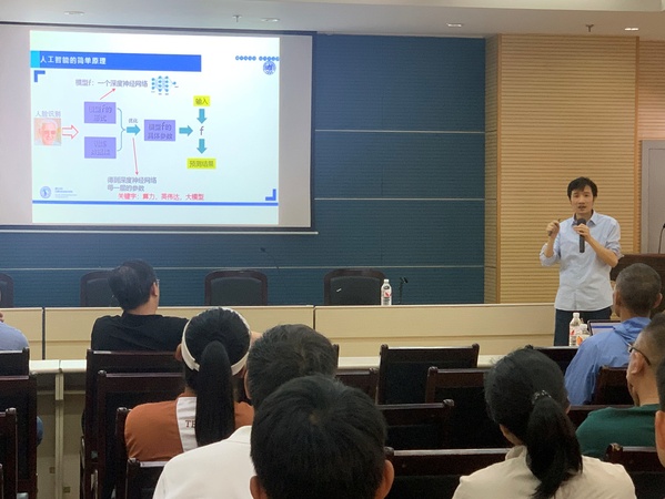 首先,王新书记介绍了学校即将在今年秋季学期推出的人工智能课程体系(AI领域课)。AI领域课是学校围绕人工智能领域的学科基础知识和前沿进展,面向文社理工医各类学生专业背景差异和成长成才需求,以及社会现实和未来的AI 素养技能需求,结合本研层次课程特点和相关学科领域发展需要,由学校打造的科学智能创新生态建设基座,是通过探索AI与AI交叉人才培养的新模式,促进本研教育教学体系改革创新的一项新举措。